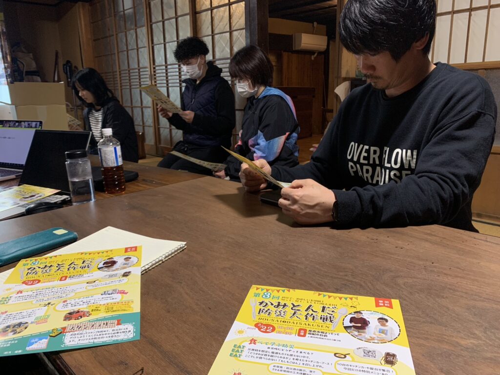 3月22日に開催予定の第3回かみとんだ防災大作戦に向け、運営メンバー向けに情報共有や意見交換を行いました。