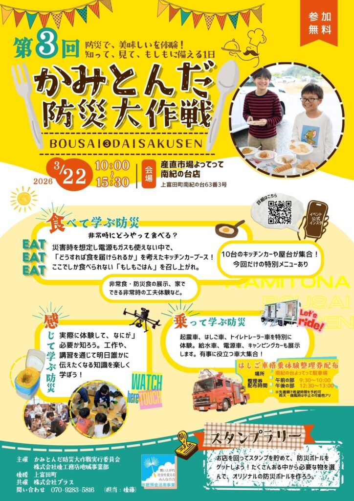 そして、このイベントを一緒に盛り上げたい、一緒に学びを深めたいと思うメンバーを引き続き募集しております。本イベント当日にご協力いただけるボランティアスタッフも募集しておりますので、ぜひLINEオープンチャット「かみとんだ防災プロジェクト」へご参加ください。